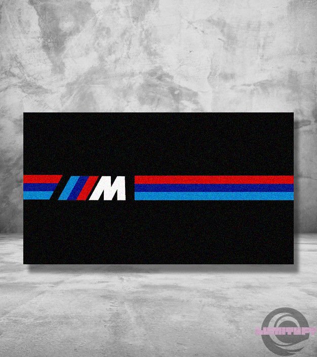 «Llevá la pasión por los motores a tus pies con el diseño M Performance Edition. Esta alfombra rectangular combina los icónicos colores celeste, azul y rojo sobre un fondo negro profundo, logrando un impacto visual inmediato en cualquier ambiente.